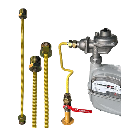 Matrícula BVG977/45 Diámetro Nominal 7,5mm Longitud fija 44cm Conectores: Terminal a válvula Macho plano rosca 3/4″ 5063 (BSPT) Terminal a regulador Macho E/C rosca 3/4″ 5053 (BSPP) Conectores Latón Caño corrugado de acero inoxidable AISI316L Revestimiento: poliolefina termocontraíble Presión de trabajo 0,5 a 4bar Tipo de Gas GN y GLP
